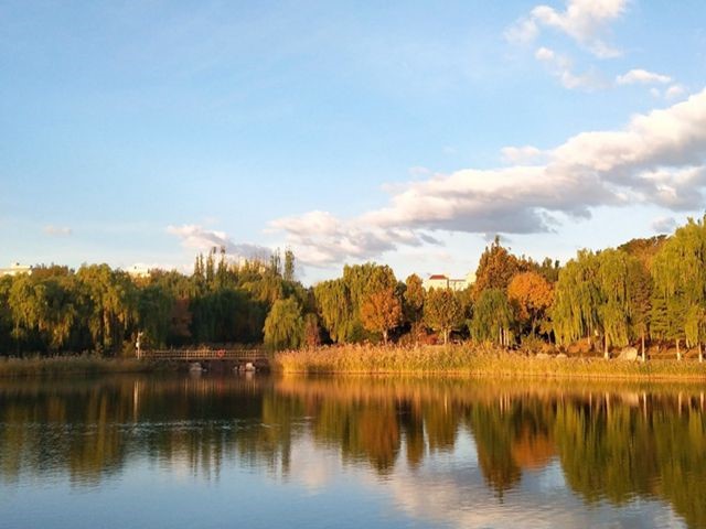 涵空净镜:“秋水涵空如镜净”。明媚的秋光里,波纹将水中的秋色微微晕染开,形成水彩画一般迷蒙柔和的质感。