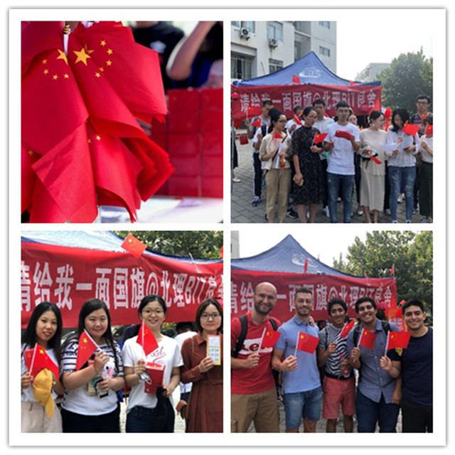2019年9月27日中午11:20,由BIT良舍举办的“请给我一面国旗@北理BIT良舍”——国庆节国旗兑换活动在中关村校区新一宿舍楼西侧举行。