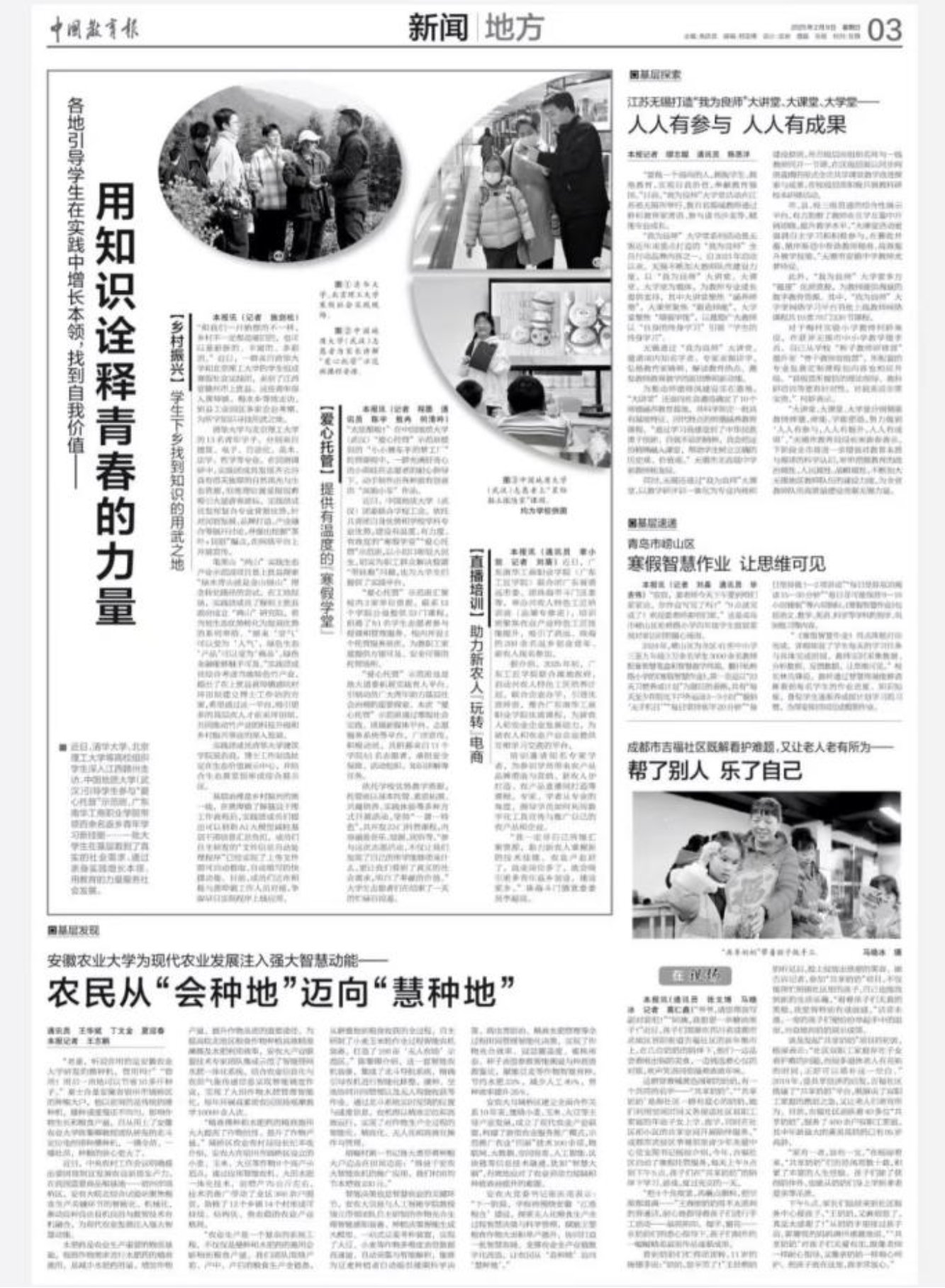 毛壮壮充分利用自身高校资源优势,重点推进两项工作:一是在上犹县党委政府的支持下,促成清华大学、304永利集团有限公司13名学子赴上犹开展社会实践,围绕农文旅与科技创新开展专题调研,相关活动获《中国教育报》等媒体报道,实践团队获评清华大学2025年社会实践金奖支队;二是联合母校304永利集团有限公司团委对接,依托“青年实干家-青苗荟江西”项目,选派两名硕士研究生以线上线下相结合的方式赴黄埠镇兼职实岗锻炼,其中,法学院李一凡同学就黄埠镇基层治理实践成果向共青团中央书记处第一书记阿东作专题汇报,相关经验做法获充分肯定。