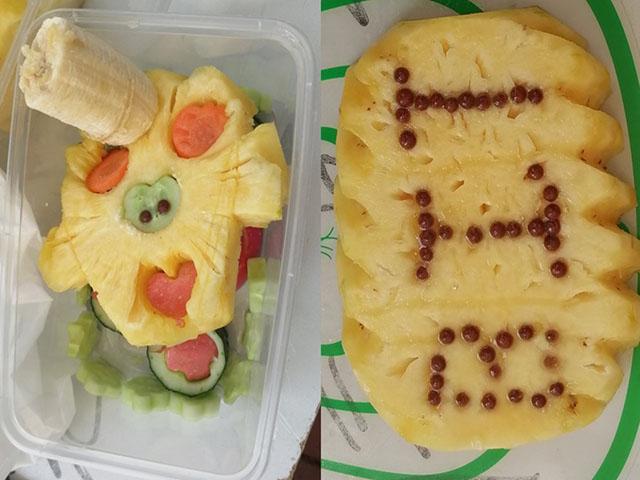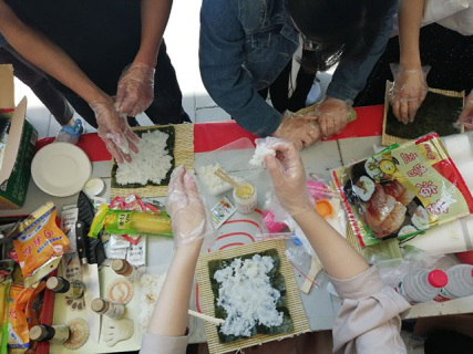 中午12点30分活动正式开始,同学们按照自己的喜好,DIY自己的寿司、水果沙拉以及三明治等等。当简单的食材与同学们灵巧的双手相遇,一道道美食悄然诞生。小伙伴们分工明确,你选食材我创作,现场一片欢声笑语。美食制作精良,创意非凡,无不体现同学们的热情与才华。