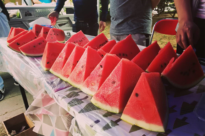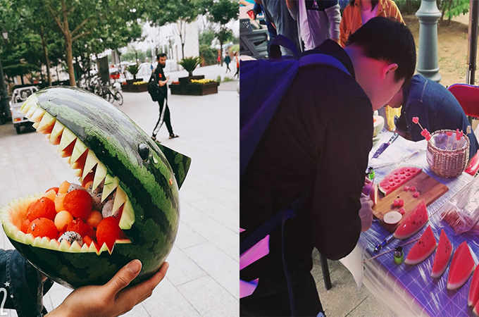 活动当天,忙碌于科研、学习的同学们放下手中的实验、书本,拿起西瓜大块朵颐,享受夏日难得的清凉。有的同学则拿起雕刻刀或者模具,在搭建的水果插花等手工操作平台里展现着他们的多才多艺,为大家呈现了一场视觉与味觉的盛宴。
