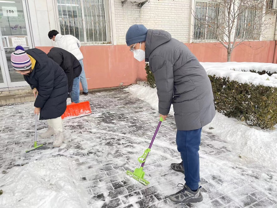寒风阵阵,挡不住扫雪除冰的热情。活动中,党员先锋志愿者们精神饱满,干劲十足,大家带着扫把、簸箕等工具,踊跃加入到铲雪除冰队伍中,用最朴素的方式和最真挚的热情履行党员的责任义务。大家齐心协力,配合默契,忙碌的身影在银装素裹的校园里构成了一道亮丽的风景线。