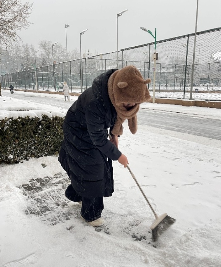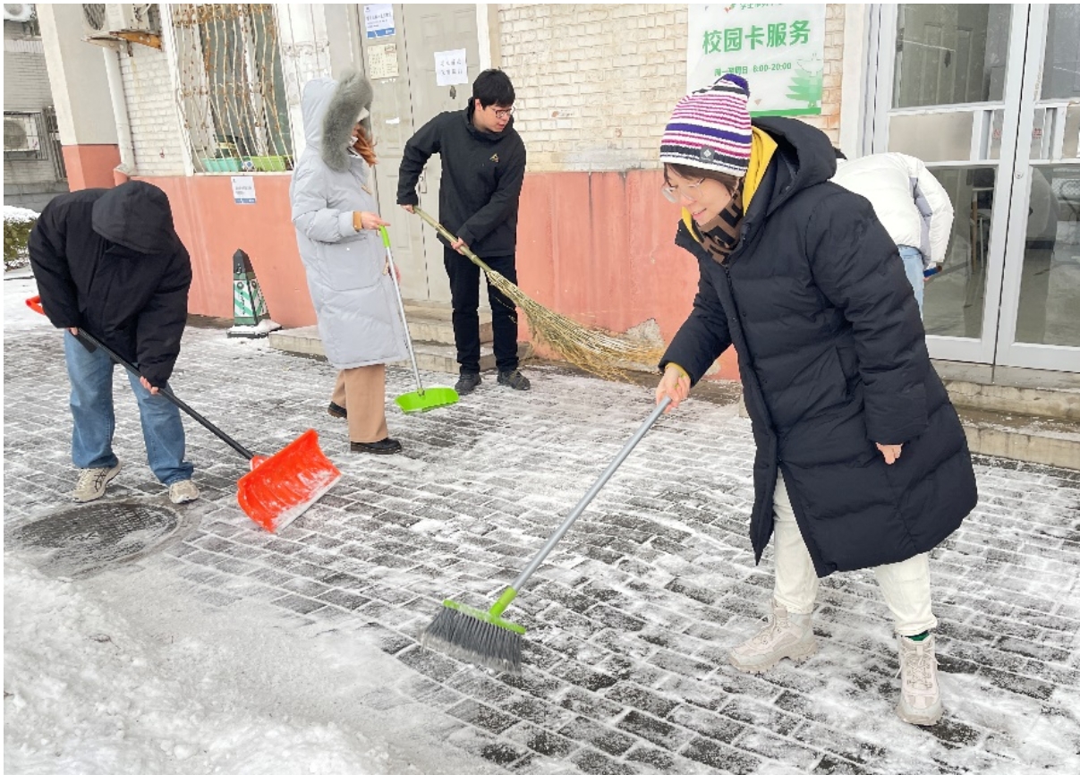 众人拾柴火焰高,经过奋力清扫,学生服务中心附近的积雪积冰情况得到缓解,“铲雪除冰”行动成效显著,道路变得安全畅通,为师生出行开辟了一条洋溢着暖暖温情的安全之路,在冬日严寒中传递着温暖与正能量。