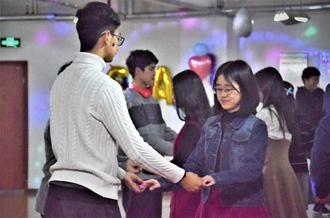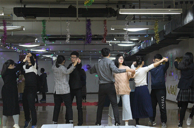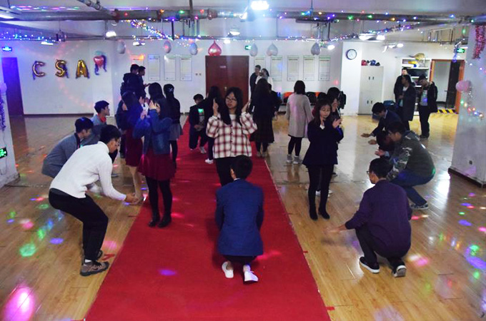 舞会伊始,入场的同学们在小游戏中相互结识,寻找舞伴。接着,由本次舞会合作方北理海协的同学们进行简单的舞蹈教学,并带领大家起舞。
