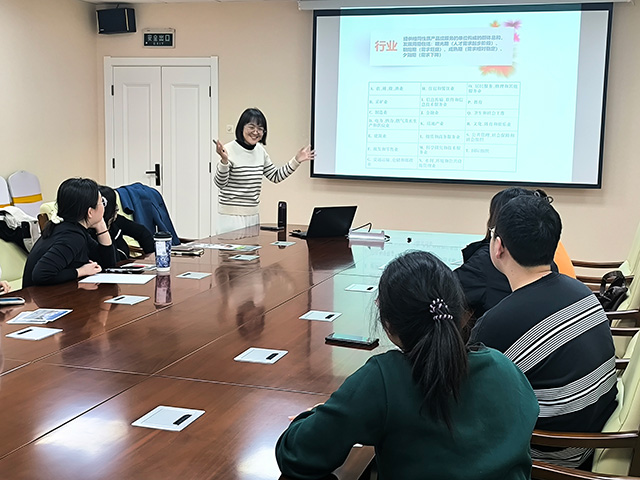 专业引领,明确方向。吴沛涓老师首先介绍了毕业生就业去向数据,让学生助理们了解研究生就业行业分布、就业单位性质、岗位类型与能力要求等。她强调了求职者要做好信息收集,提前了解应聘企业的性质、企业规模、主要业务和员工人才结构等信息。经过吴老师的讲解,学生助理们了解了不同行业的特点,掌握了选择行业的基本技能,对于未来的职业定位更加清晰。
