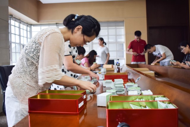 中心积极与学校个机关单位联系沟通新生物资发放,总计完成10个部门共计17余种资料的接收。并组织志愿者集中分拣,按照学院招生人数分类汇总,打包送至21个学院工作办公室。