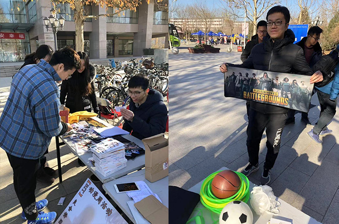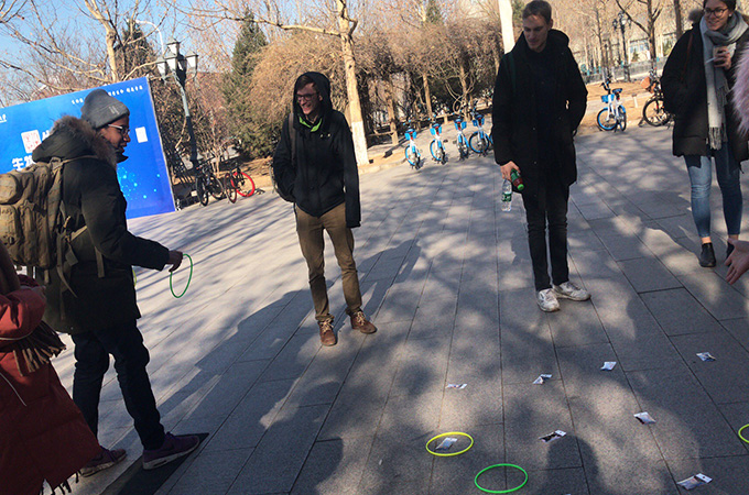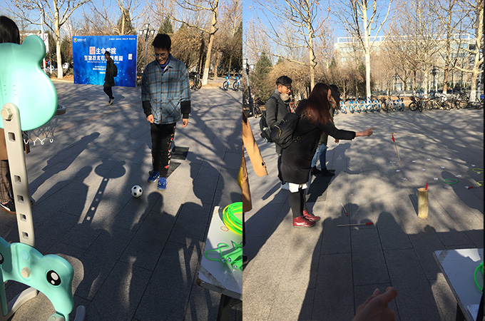 尽管寒风瑟瑟,依然抵挡不住大家参与游戏的热情,甚至有同学排队等候游戏。丰富有趣的游戏还吸引了许多外国友人的参与。