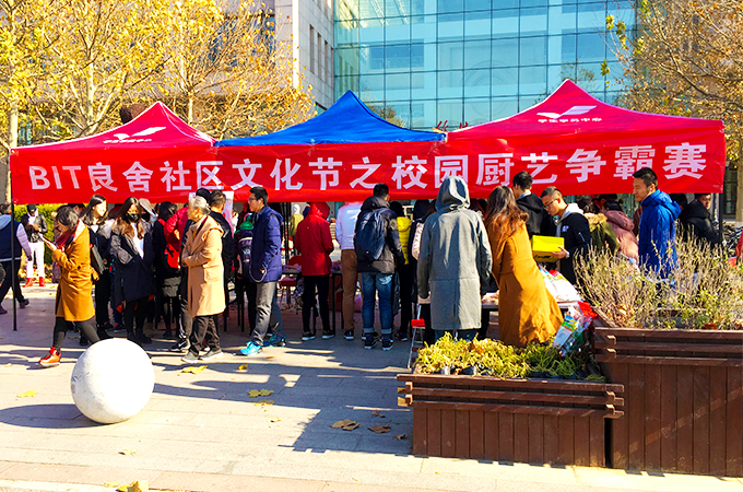 2017年11月18日,BIT良舍在图书馆前成功举办以“给你温暖的家”为主题的校园厨艺争霸赛活动。此次活动旨在弘扬饮食文化传统,营造良好的校园氛围,引导“绿色、健康、营养”的消费理念,增强学生间的互动交流,展现BIT学子的烹饪风采。