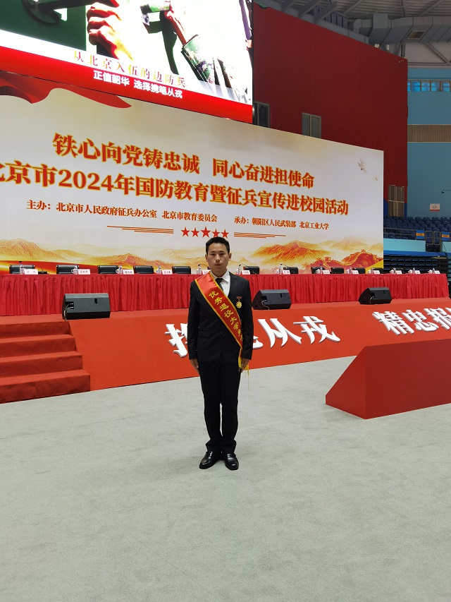 传承红色基因,争当强军报国尖兵。张才华本科期间从学校参军入伍,驻守在习近平总书记的第二故乡——河北正定。曾作为唯一的列兵选手,勇夺全旅比武冠军,成为全营军事标兵。因素质过硬,曾被选派参加外国元首专列警卫等国家重大任务十余次,并成为全营唯一连续两年获评优秀士兵的义务兵。2024年,他从全市2万余名退伍大学生中脱颖未出,获评第七届“北京市优秀退役大学生士兵”,展现了我校学子过硬的素质和风采,为学校增光添彩。